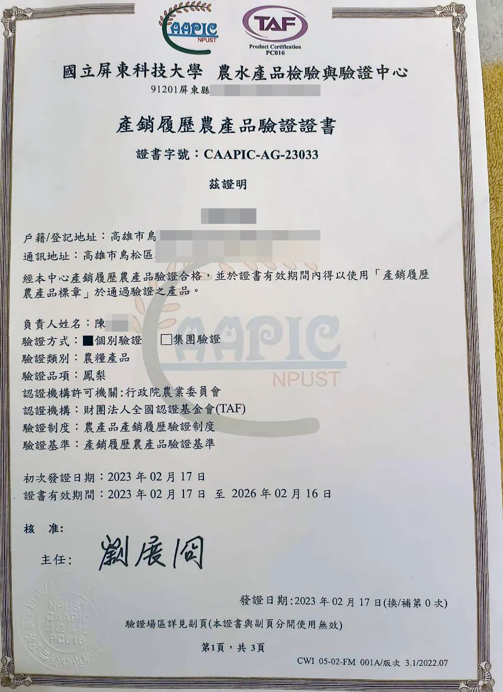 屏東縣內埔鄉青農陳小姐,原從事造型師工作,為傳承父業,毅然結束經營多年的造型設計店,返鄉種鳳梨成為第三代傳人,經歷祖父與父親的高品質鳳梨栽培生產技術影響,這一份工作不只是傳承超越六十年的專業及技術,繼續承擔這數十年來家族在鳳梨田。