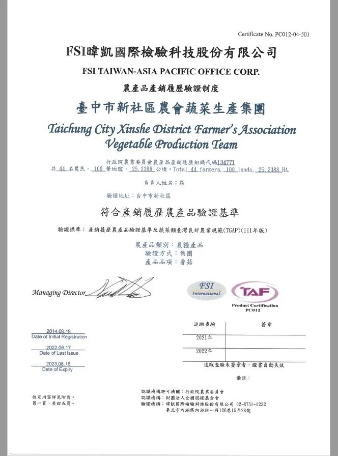 產銷履歷新社菇早味特選小菇