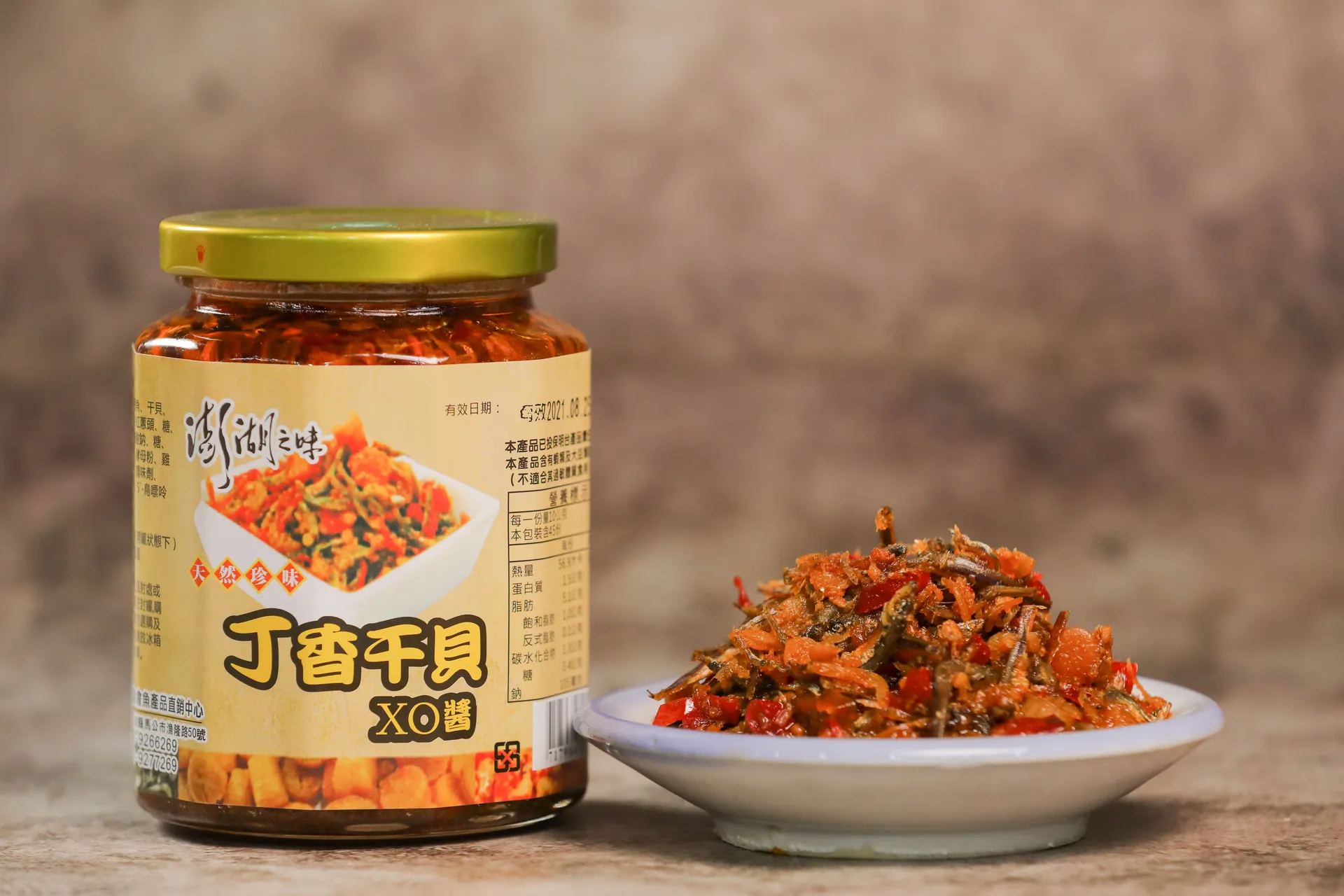 丁香干貝XO醬 本會目前開發之海鮮XO醬,以新鮮味美的高級丁香魚為食材製作,產之丁香干貝XO醬其獨特之口感,可炒.拌飯、炒.拌麵,泡麵等等,目前已成為本縣特殊最具特色及最夯之伴手禮產品。
