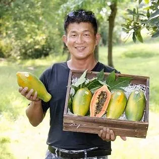獲得107年履歷達人的陳大哥,木瓜不做修枝,冬季時保留200葉的木瓜葉,所以比一般的木瓜提早120天熟成,因此保留一定的甜度跟香氣! 友善耕作,果園不除草,以抑草蓆覆蓋,讓底下的草自然成為營養來源!