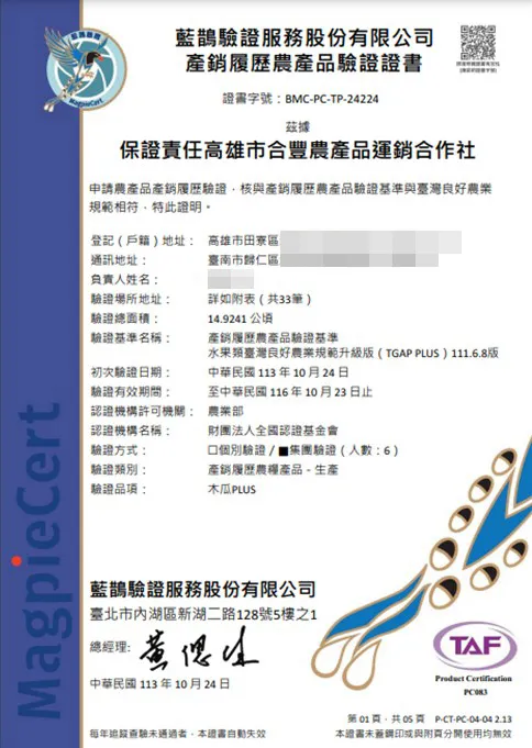 新北市農會真情食品館_富春山農場-台農2號木瓜(6台斤)★產銷履歷★