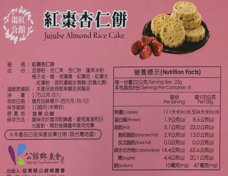 公館紅棗杏仁餅8入176g/盒