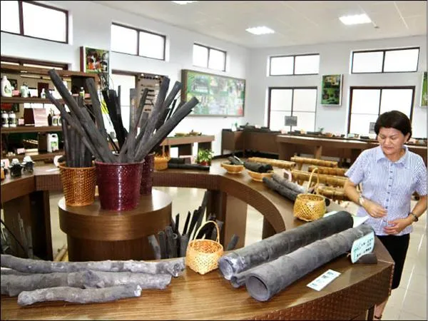 龍崎區農會的竹炭商品,使用在地竹材為原料(4~6年生),在竹炭窯中經過高溫炭化,歷時十多天熱分解過程精煉而成的竹炭。