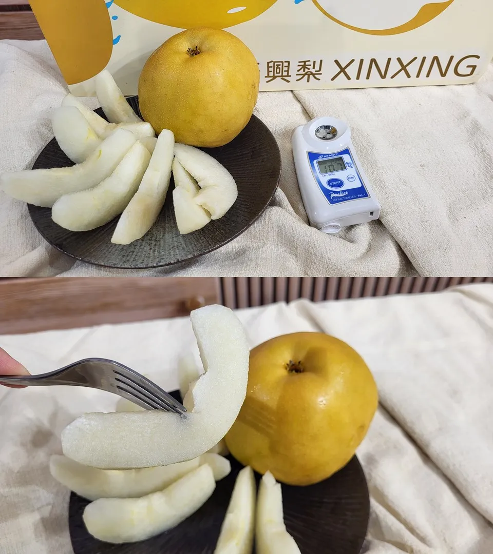 苗栗卓蘭一直是高接梨鼎鼎大名的產地,新興梨果肉細緻脆嫩、豐盈多汁,清甜中微帶蜜香,連皮食用口感更佳!