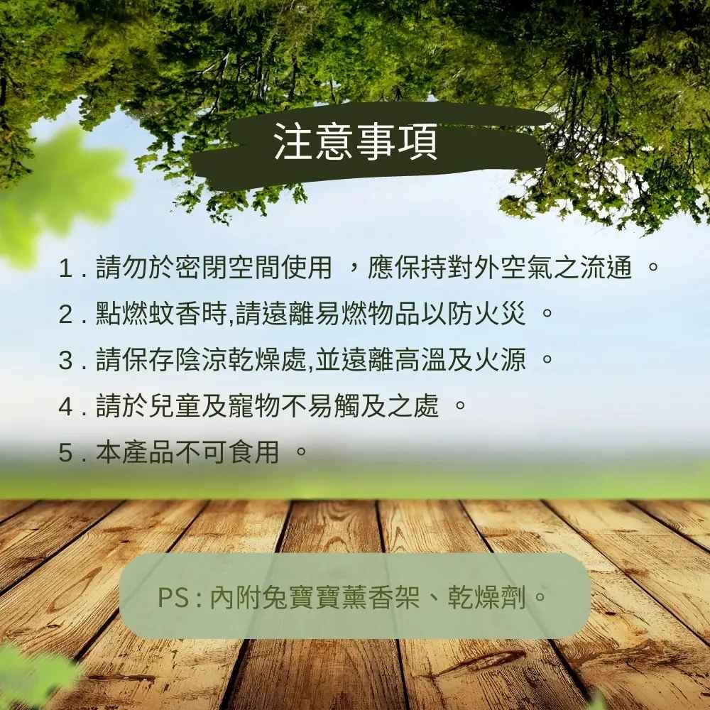 【注意事項】使用時請遠離易燃物、應避免孩童接觸火源。香品燃燒,建議在空氣流通之環境使用。