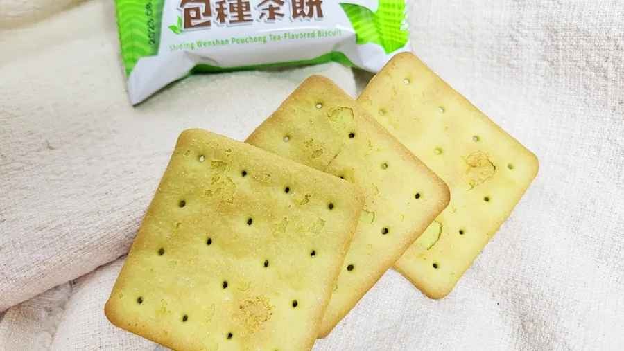 選用包種茶粉研磨,一咬下去口裡溢滿茶香
