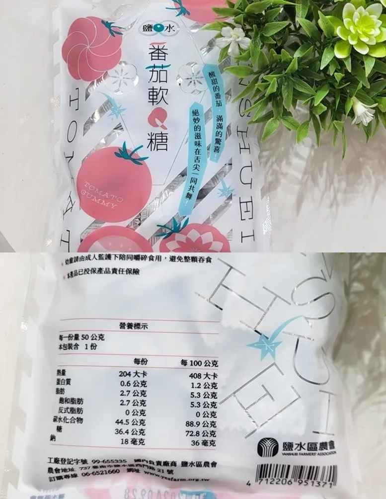 台南市鹽水區農會全新推出「鹽水番茄軟Q糖」,強調嚴選獨特鹽地小番茄為原料,絕不添加防腐劑及人工色素,將番茄軟Q糖完美保留鹽地番茄特有的酸中帶甜自然風味