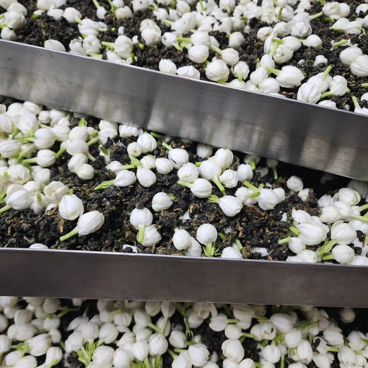細選的茶葉薰製茉莉花
