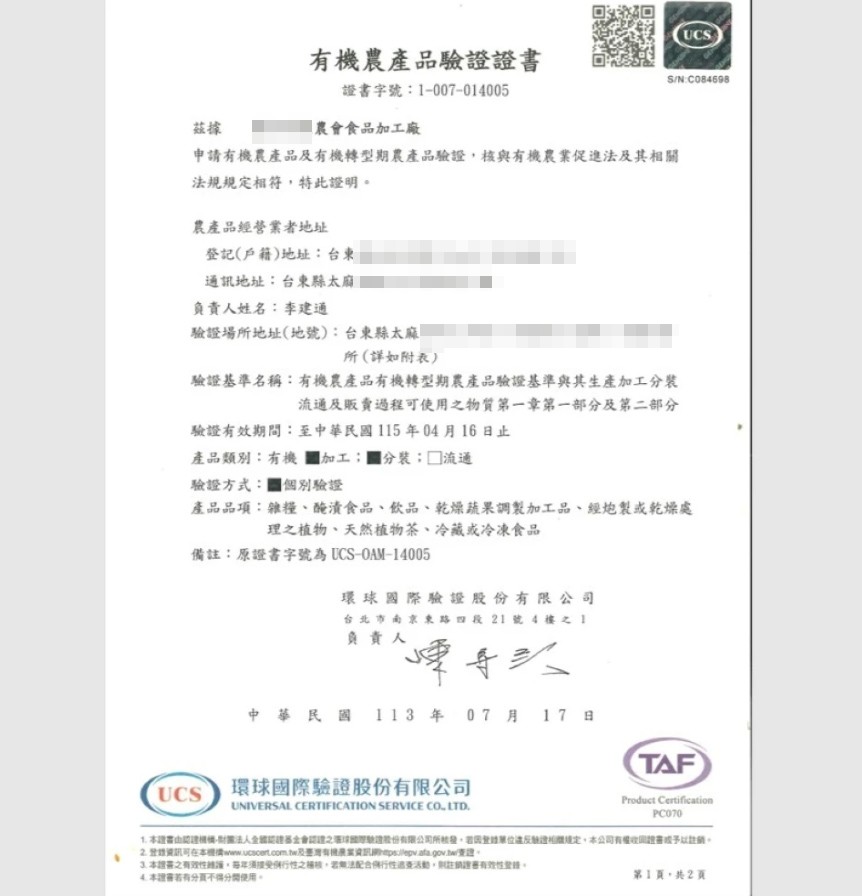 出品:台東地區農會