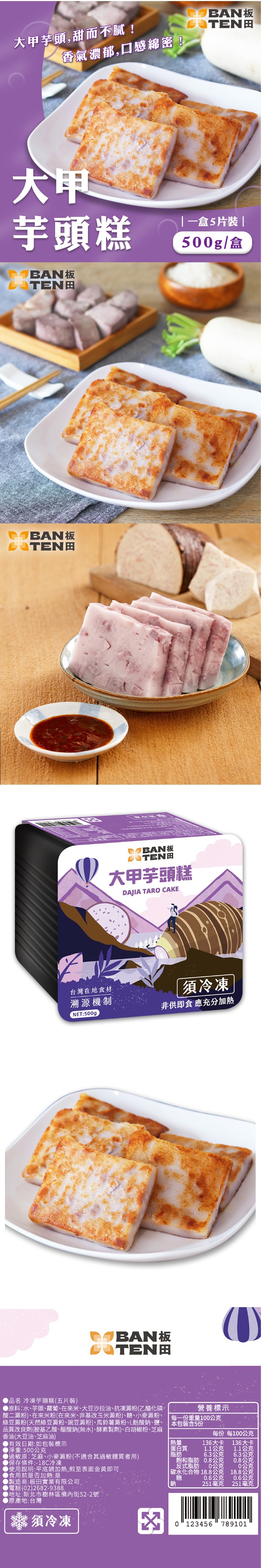 內容:1.大甲芋頭蘿蔔糕500g/盒;5片/盒*1