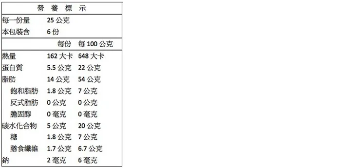 【成 份】腰果、核桃、杏仁、楓糖漿、麥芽糖、食鹽 。