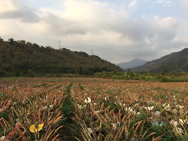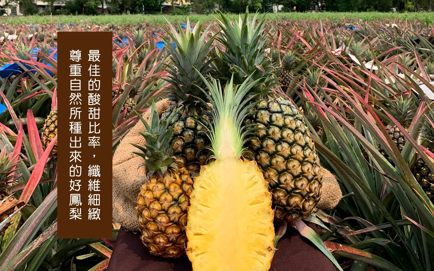 有機金鑽鳳梨特點 田地所在的屏東瑪家鄉,是排灣族的所在,吳大哥和美蓮雖非族人,卻很認真的想把這個年輕人都走光的地方找回文化,甚至將自己的鳳梨產品用排灣族的語言命名。我們在端午節前,聽著美蓮介紹排灣族的粽子「吉拿富」、聽她聊著期待排灣青年回鄉的夢想。我們在現場沒說,但已在心裡告訴自己,不和這樣的人並肩,要和誰同行?目前吳大哥的園區區分為『有機認證』專區與『無農藥』專區。『有機認證』專區因為有機農耕多年、生態恢復平衡健康,現在已經達到連有機肥料、有機防蟲材料都很少使用的狀態。『無農藥』專區,現階段農耕方式為:施以化學肥料、無使用農藥,此區目標為逐步減低化肥施用。居民、學生、排灣族、生物們和這個農場,就像吳大哥這個園子,沒有誰主、誰從,每個人都是不可或缺的主角,有草有鳳梨。