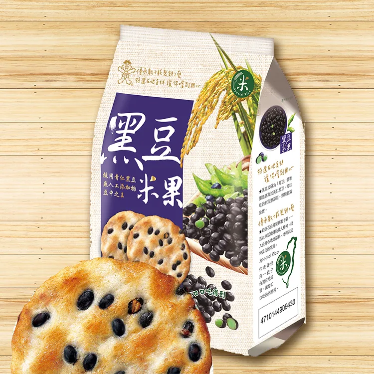 ~人氣新品~國產黑豆米果(160g) 嚴選100%正港台灣米結合粒粒飽滿台灣黑豆,每一片看得到、吃得到滿滿黑豆,口口酥脆搭配米香四溢,讓人忍不住一口接一口。台灣嚴選優質好米與黑豆的完美混搭,碰撞出無法抵擋新口感。