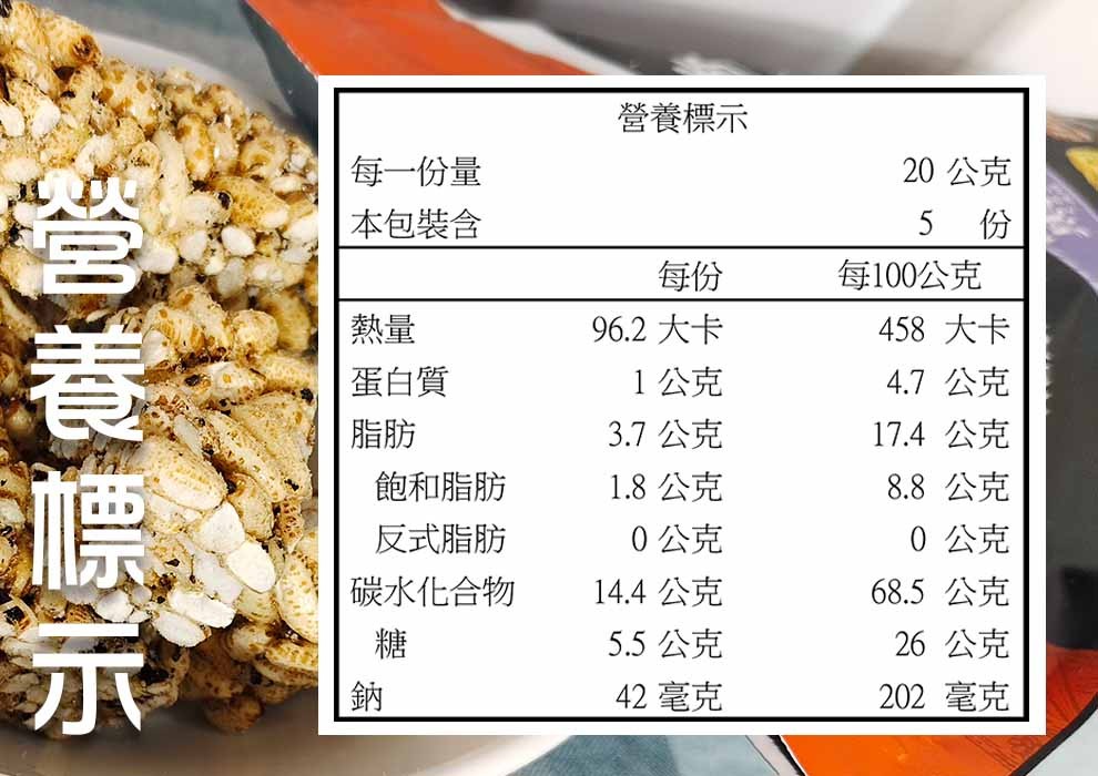 成份:花蓮糙米、花蓮黑米、麥芽、海藻糖、白糖、棕櫚油(非氫化植物油)、海鹽