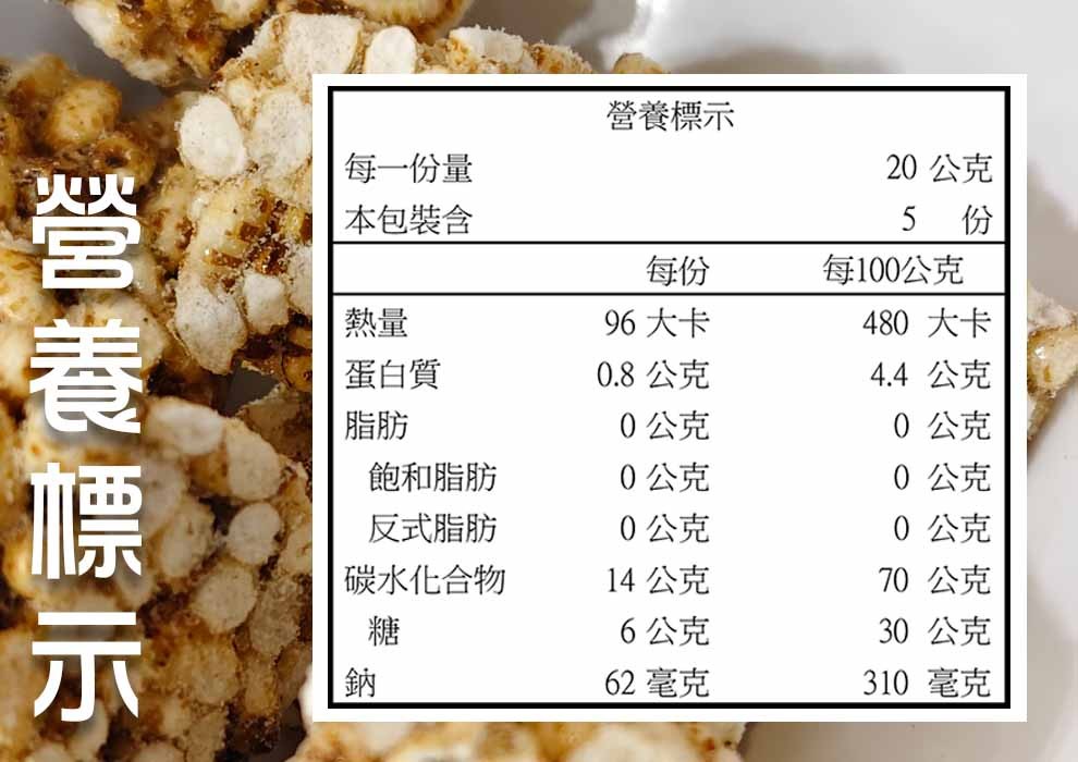 成份:花蓮糙米、麥芽、海藻糖、白糖、棕櫚油(非氫化植物油)、柚皮乾粉、海鹽