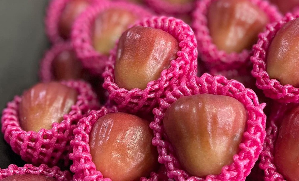 從蓮霧到芒果,每一顆果實都承載著土地的滋養與農人的汗水。其中最令人驚艷的,就是色澤如黑寶石般閃耀的——黑珍珠蓮霧。這是近年備受注目的蓮霧品種,外觀深紅接近黑色,果型飽滿渾圓、帶有自然蠟光,宛如珠寶般閃耀。咬下一口,水分豐富、果肉緊實,口感層次分明,堪稱蓮霧界的極品。