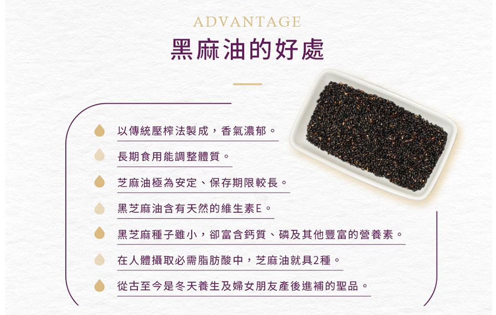 嚴選高品質黑芝麻籽,經人工篩選、低溫烘焙與自然熟成,保留最純粹的營養與濃郁芝麻香氣。