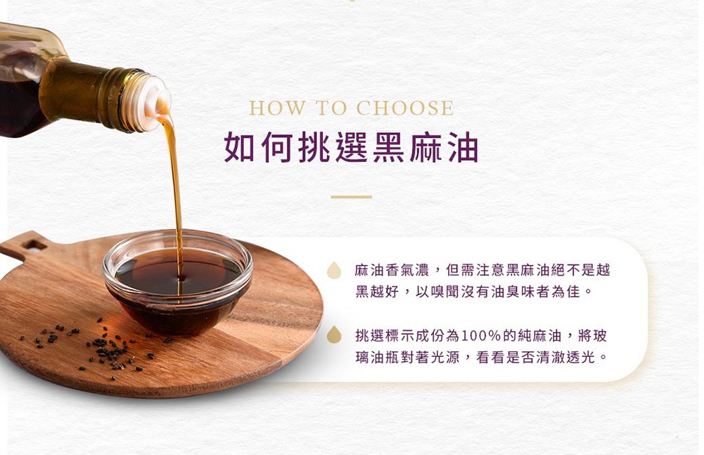 香氣濃郁、油質細緻,為各類料理增添溫潤口感