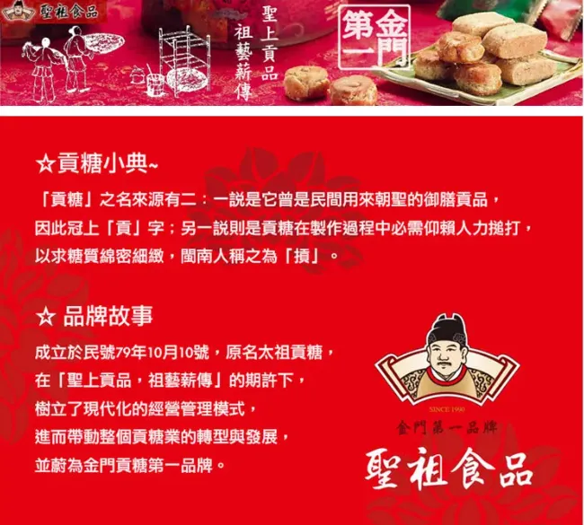 金門第一品牌-聖祖貢糖- 聖上貢品 祖藝薪傳