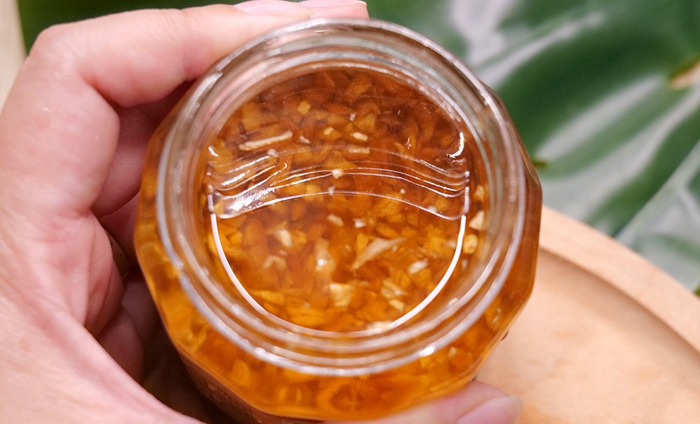 將大蒜香氣融合至食用油中的萬用調味料,適合拌麵、炒菜、涼拌或做為麵包沾醬,能瞬間提升料理的香氣與風味。瑞春蒜以蒜末與葵花油製作,香氣濃郁。